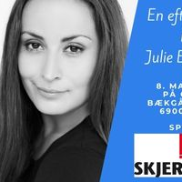 Alt det får du for 195 kr. En hyggelig Eftermiddag - Spændende foredrag med Julie Bertelsen - Det store kagebord med kaffe/the inkluderet i prisen - Deltag i amerikansk lotteri.